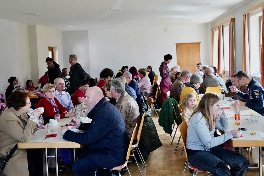 Nach der schönen Feier mit der abschließenden Möglichkeit, einander mit Weihwasser zu segnen, waren alle herzlich zum Pfarrcafe eingeladen. Danke dem Team von MOMATRE für die engagierte Ausrichtung des Pfarrcafes!