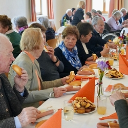 Seelisch gestärkt, begaben sich die älteren Herrschaften nach dem Gottesdienst zum gemütlichen Beisammensein ins Pfarrheim, wo Elisabeth Schöpf alle herzlich willkommen hieß.