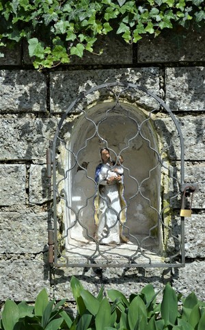 Die Statue am Friedhofeingang verschwand 2008 und konnte 2009 dank diverser Spendenaktivitäten der Bevölkerung neu angeschafft werden.