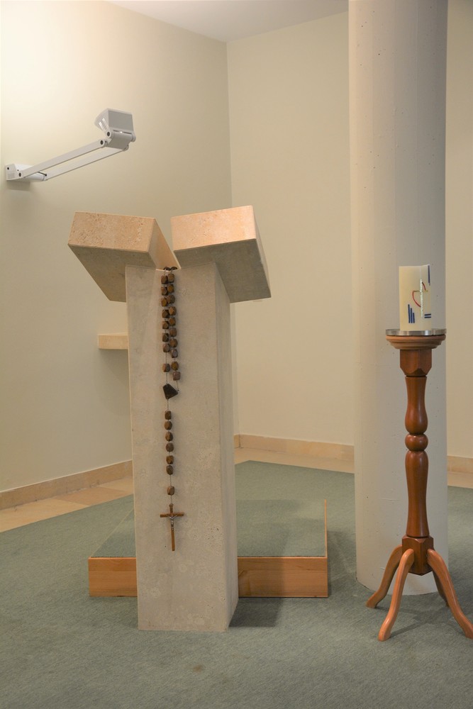 Die Hauskapelle ist immer als Andachtsraum für die Patienten offen. An jedem Mittwoch wird hier eine Hl. Messe zelebriert.